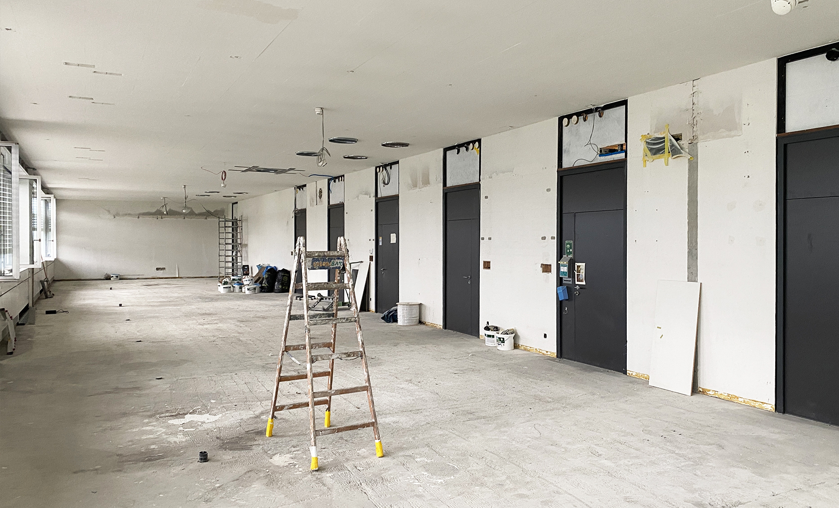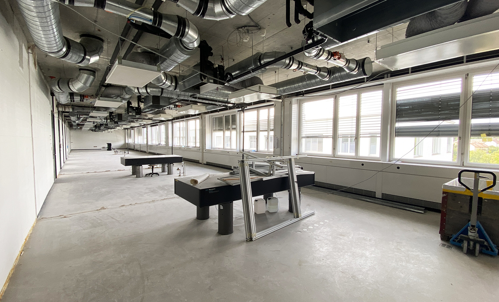 Le BM-Wetlabs est un plateau du 4ème étage du bâtiment BM reconfiguré et transformé pour recevoir une série de laboratoires partagés de chimie. L’ensemble des techniques est remis à neuf, les cloisons modifiées, les sols et peintures refaites et le respect des normes incendies et sécurité assuré (changement des portes, coupe-feu ect…). Les travaux sont aussi localisé dans le grand local technique de l’étage 5 car un nouveau monobloc et des nouvelles distributions ont dues être tirées vers l’étage 4. Les travaux ont lieu en site habité avec de fortes contraintes de bruit et vibration pour les autres utilisateurs du bâtiment. Le projet est prévu pour terminer à l’automne 2026 avec la livraison, le raccordement et la mise-en-service du mobilier de laboratoire.